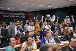 A admissibilidade da PEC 171/1993 (Proposta de Emenda à Constituição), que reduz a maioridade penal de 18 para 16 anos, voltou a ser assunto de debate na Comissão de Constituição e Justiça e de Cidadania da Câmara dos Deputados. Após pedido de vista ocorrido na semana passada, hoje (24) os deputados voltaram a debater, desta vez com dois constitucionalistas. Com a plenária lotada, o debate iniciou-se com tensão entre manifestantes e deputados favoráveis à PEC.