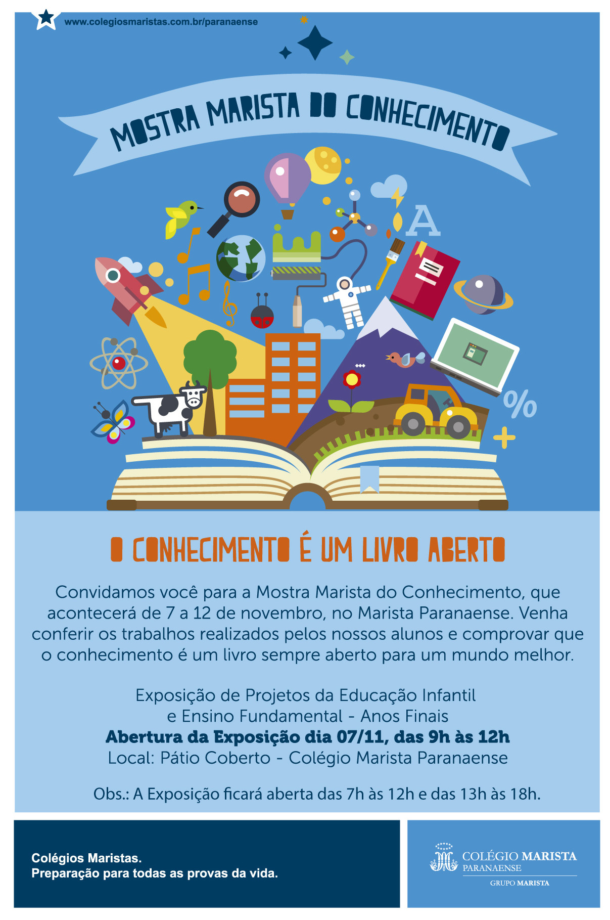 Entre os dias 7 e 12 de novembro o Colégio Marista Paranaense promove a Mostra Marista de Conhecimento, evento que reunirá projetos da Educação Infantil e Ensino Fundamental desenvolvidos durante o ano.