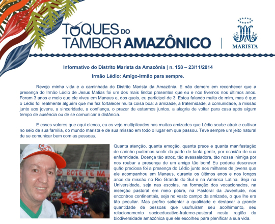 O Distrito Marista da Amazônia divulgou na semana passada o informativo Toques...