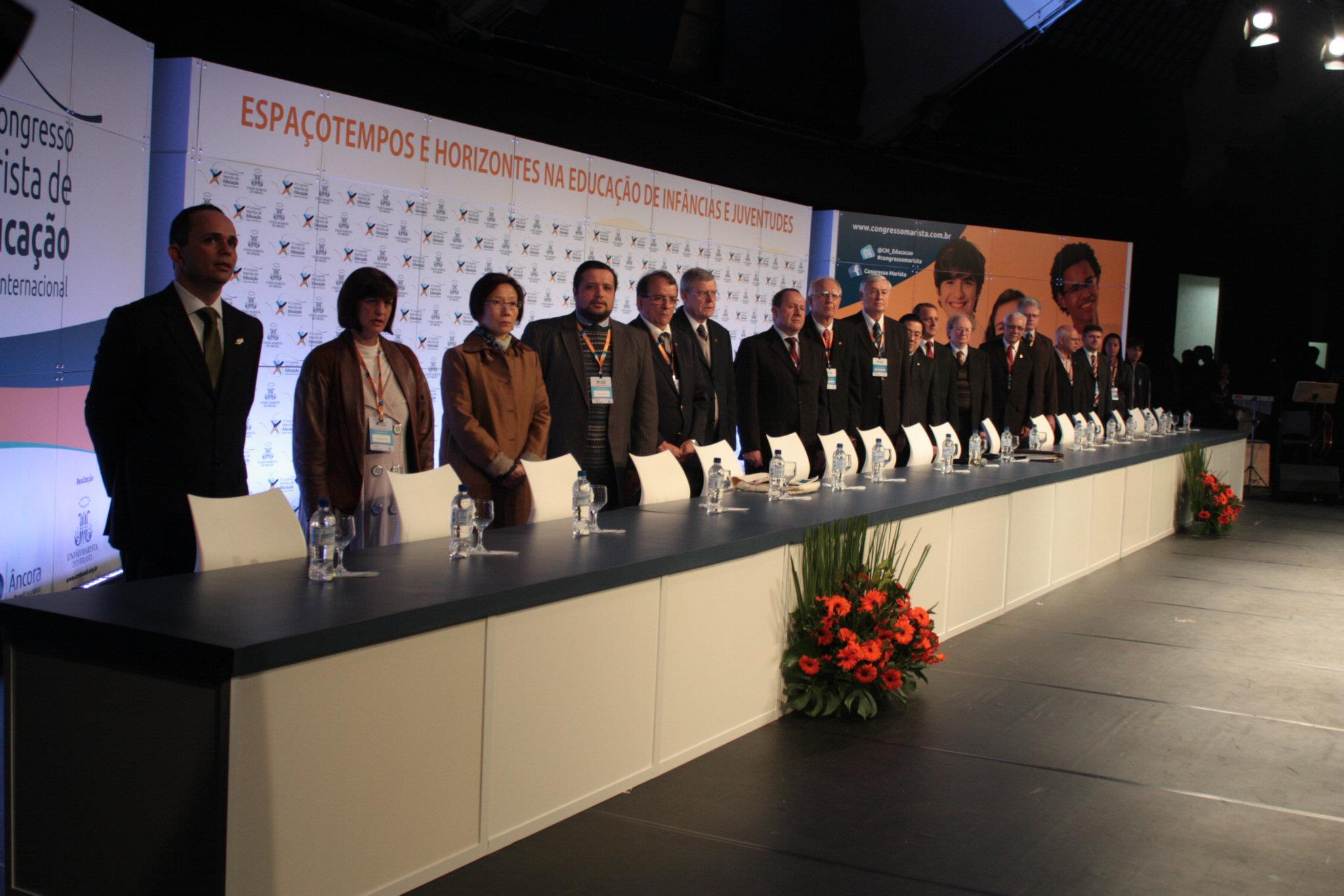 A cerimônia de abertura contou com a presença do Bispo Auxiliar de São Paulo, Dom Júlio Endi Akamine, que representou Dom Odilo Scherer, Arcebispo Metropolitano de São Paulo; Janaína Paim – Coordenadora da Câmara de Educação Básica da ANEC -, além de representantes do governo e da prefeitura de São Paulo. Também compuseram a mesa, autoridades Maristas da UMBRASIL e das três províncias que atuam no território brasileiro.