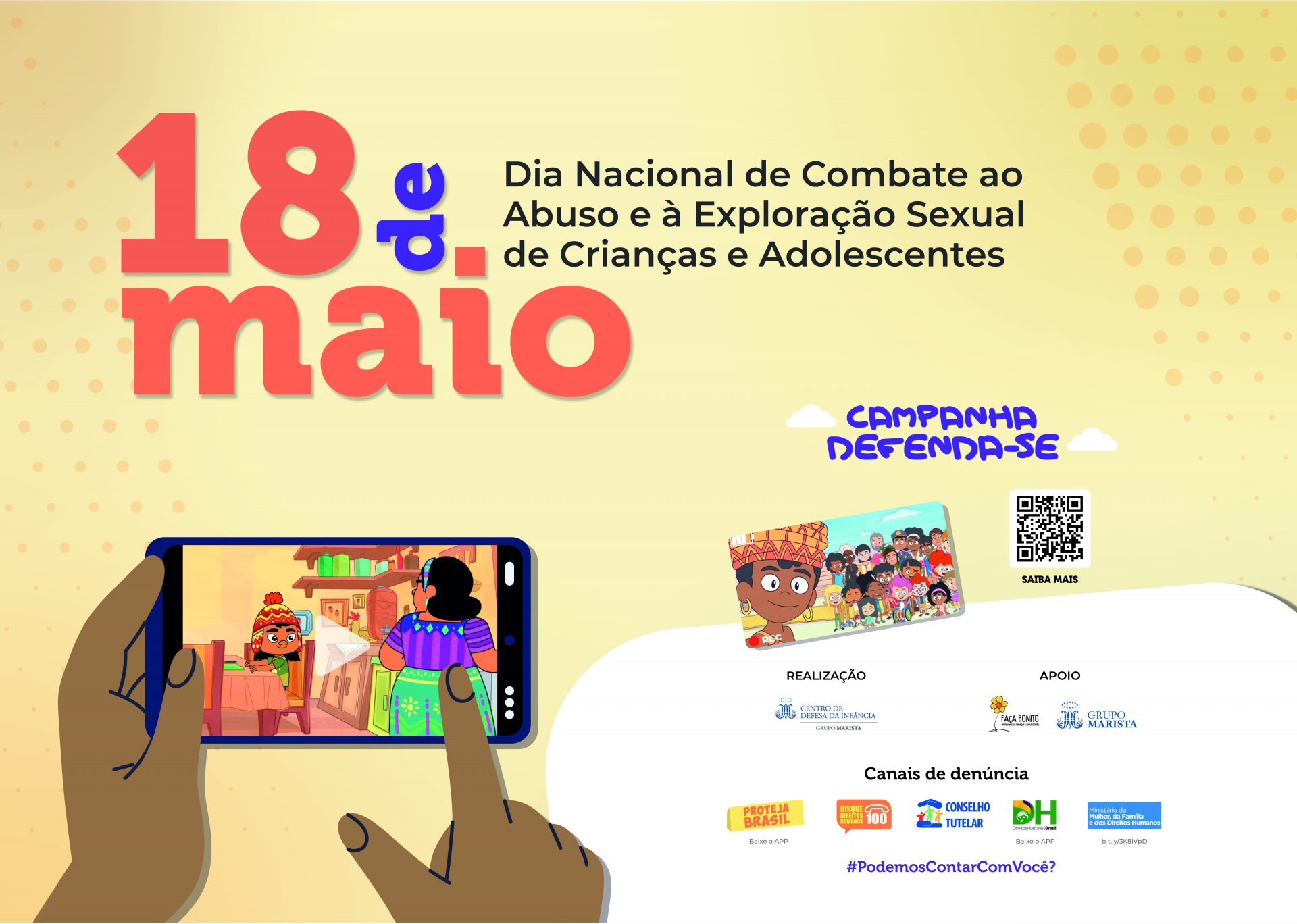 Uma forma de contribuir é divulgar iniciativas de prevenção, como a campanha Defenda-se, do Centro Marista de Defesa da Infância. Trata-se de uma série de vídeos animados com dicas sobre como crianças podem agir para se prevenir e denunciar situações de violência sexual. Com uma linguagem amigável e educativa, as histórias também apresentam noções sobre cuidados com o corpo, intimidade, privacidade, identificação de emoções e segurança online.