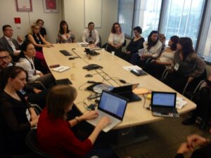 Gleice da Silva, do Santander e uma das coordenadoras do grupo, iniciou o encontro apresentando o histórico do grupo, formado em 2010 e que na época se chamava “Juntos pelo ECA”, momento no qual o Estatuto da Criança e do Adolescente completava 20 anos. Durante o encontro, discutiu-se o planejamento para que se reconheça a construção feita até o momento e o desenho de novas ações que possam ser conjuntamente realizadas, dialogando com as normativas nacionais e internacionais, mobilizando instituições para o investimento qualificado na área de garantia de direitos, disseminando temas de políticas públicas e construindo novos conteúdo para o aprofundamento do debate e o fortalecimento do tema na sociedade.