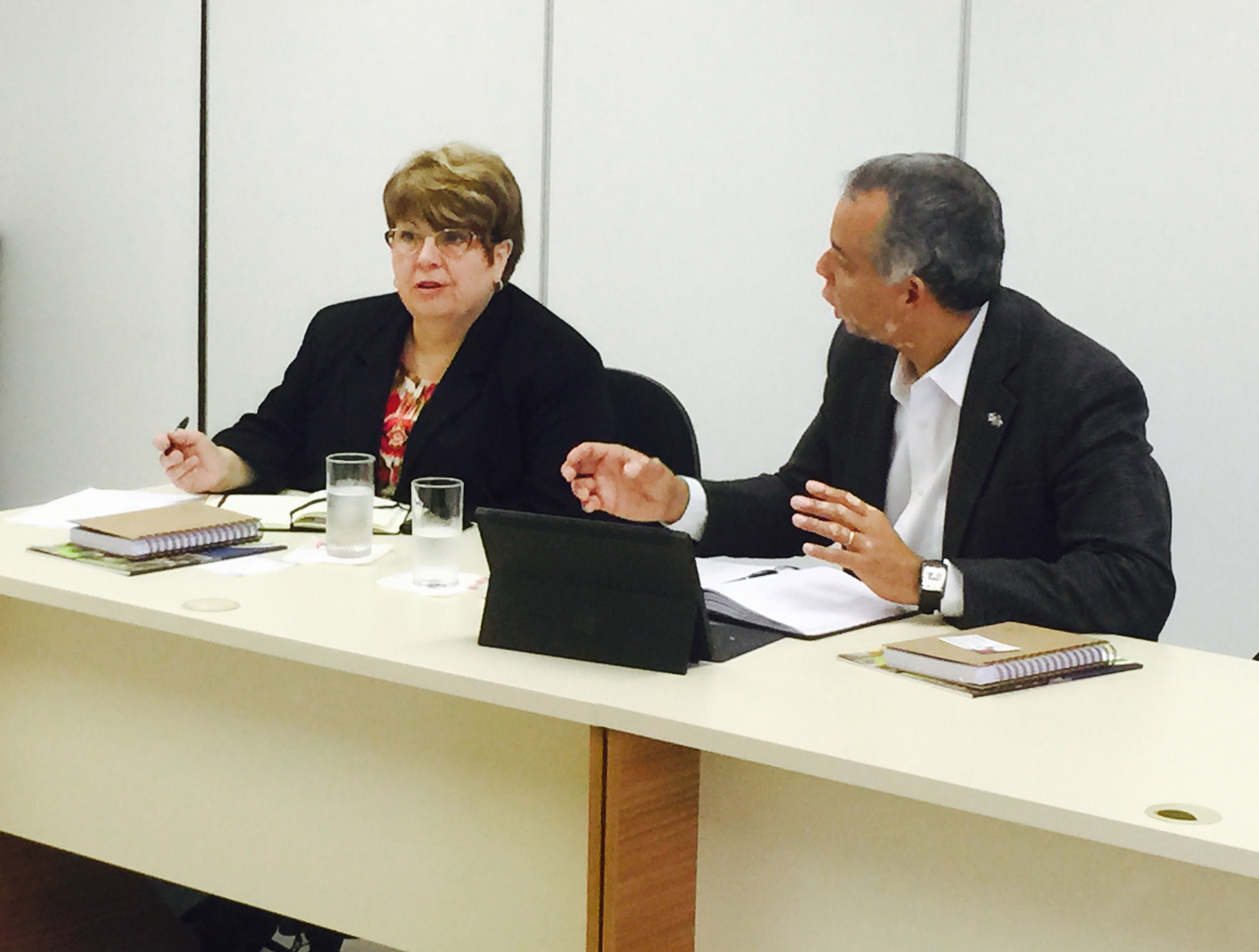 A canadense Marilyn Mason e o brasileiro Paulo Silva, da King’s University College, foram recebidos por integrantes das áreas de Representação Institucional (Leila Paiva e Juliana Nogueira); Missão/Educação (Divaneide Paixão) e Vida Consagrada e Laicato (Ir. Natalino de Souza). O encontro, resultado de negociações prévias entre as duas instituições, promoveu o intercâmbio de conhecimento sobre estrutura, objetivos e possiblidades de projetos sobre formação conjunta.